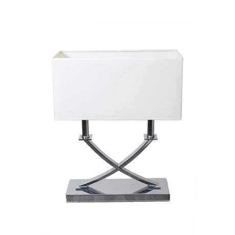 Настольный светильник отражает дух современного стиля в интерьере – четкие линии, простые чистые цвета и блеск серебристого металла. Будет прекрасно смотреться в паре на прикроватных тумбах.