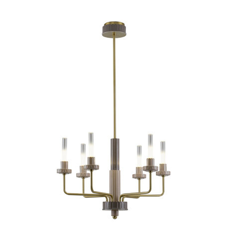Светодиодная подвесная люстра Atelieri V11692-PL с керамическим декором. Дизайн и материалы Подвесная люстра Atelieri-это гармоничное сочетание современных форм и декоративной выразительности. Шесть вытянутых цилиндрических плафонов из прозрачного стекла создают визуальную лёгкость, а аккуратные декоративные элементы из керамики в голубом оттенке придают светильнику характерный акцент. Металлический корпус с благородным коричневым покрытием подчёркивает элегантность дизайна и делает люстру уместной в самых разных интерьерах -от минимализма до неоклассики.