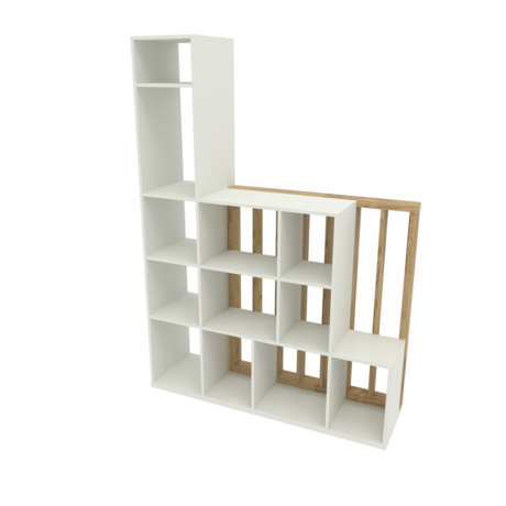 Стеллаж и рейки – 2 в 1! В меру компактная и одновременно функциональная перегородка. Можно разложить книги, декор или цветы. Легкая светопропускаемая композиция. Прекрасно сочетается с барными стойками коллекции Abra. Необходимо крепление к стене.