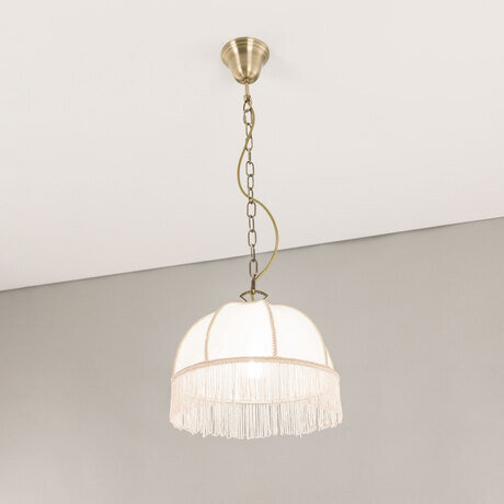Уютный подвесной светильник Citilux Базель CL407111 выполнен в классическом стиле. Основание металлическое, благородного бронзового цвета. Тканевый винтажный абажур кремового цвета декорирован оригинальной ажурной тесьмой и искусно обшит бахромой.