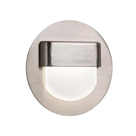 Светильник круглой формы, цвет матовый хром. Корпус выполнен из металла, что гарантирует его прочность и долговечность. Рассеиватель из оптического полимера позволяет свету равномерно распространяться по всей поверхности ступени. Благодаря цветовой температуре 3000К свет получается теплым и уютным.