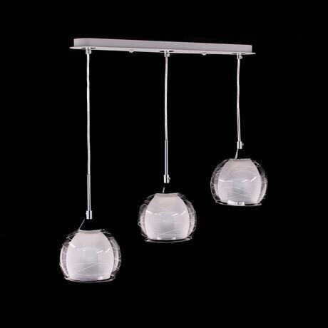 Подвесной светильник «Буги» выполнен из трех независимых подвесов, фиксирующихся на одном креплении, с возможностью регулировки высоты каждого в отдельности. Такое конструктивное решение позволяет создавать различные дизайны светильника, фиксируя разную высоту подвески плафонов. Вариаций огромное множество – все три плафона на разной высоте хаотично, или поступательно лесенкой, или же центральный плафон ниже, крайние повыше. Всё зависит от вашего интерьера и личных предпочтений. Регулировку произвести можно перед установкой светильника на потолок. Регулировка подвесов позволяет монтировать их на высоту до 105 сантиметров, или наоборот, укорачивать до минимальной высоты - 45 сантиметров от потолка. Необычным дизайном выделяется плафон. Прозрачная внешняя часть оформлена декоративным узором, внутренняя часть плафона полупрозрачная. За счёт этого свет от подвеса яркий, но очень мягкий. Патроны из термостойких материалов выдерживают лампы накаливания до 75 ватт включительно, площадь освещения составляет 12 кв. м. а энергосберегающие, или светодиодные лампы можно использовать любой яркости что позволит вам осветить большую площадь освещения. Серия выполнена в двух цветах – белый и хром, а также алюминий и хром, что облегчает возможность привязки по цветовой гамме к вашему дизайну. Тройной подвес с запасом освещает площадь до 11 квадратных метров.