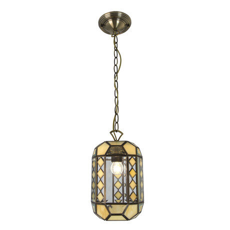 Одиночный подвес Citilux Faset CL441111 в стиле ретро. Каркас светильника — из металлического сплава с покрытием под старую бронзу. Плафон сложной формы изготовлен вручную из витражного стекла разных оттенков.