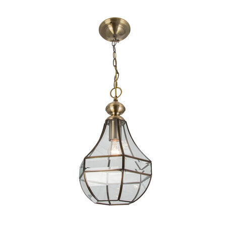 Одиночный подвесной светильник Citilux Gera CL444110 в ретро-стиле. Каркас из металлического сплава благородного оттенка старой бронзы. Витражный плафон причудливой формы изготовлен из прозрачного стекла вручную.