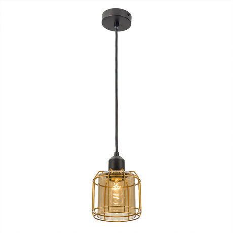 Подвесной светильник Citilux TAVERNA CL542212 с одним плафоном выполнен в популярном стиле лофт. Корпус металлический, чёрный с декоративными элементами бронзового цвета. Плафон из прозрачного стекла светло-янтарного оттенка.