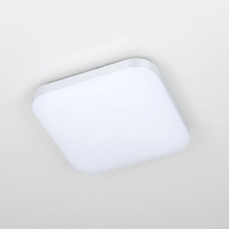 Модель оснащена датчиком движения. Регулировка порога освещённости имеет 4 уровня. Задержка времени выключения – от 8 сек. до 12 мин. Радиус действия от 1 до 7м (при установке на потолке). Переключатель цветовой температуры позволяет при монтаже установить режим свечения - тёплый, нейтральный или холодный свет (3000-4000-5500К). Мощность 24Вт, световой поток 2000Лм, размер 28,5х28,5см, высота 6,5см.