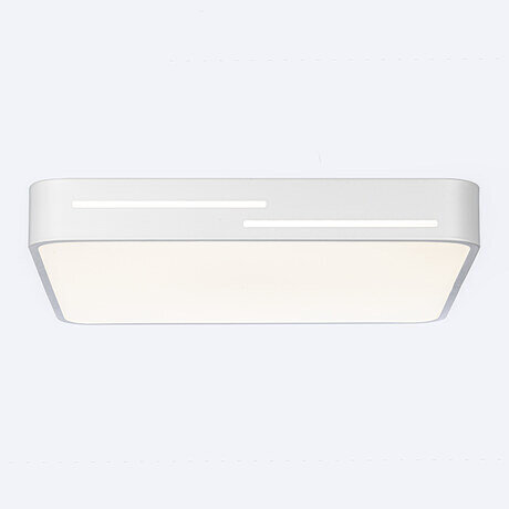 Накладной плоский светильник подходит для всех типов потолков, в том числе натяжных. Тип крепления – через основание. Изделие комплектуется инфракрасным пультом ДУ. Для питания пульта применяются 2 батарейки формата ААА, напряжением 1,5V (не входят в комплект).