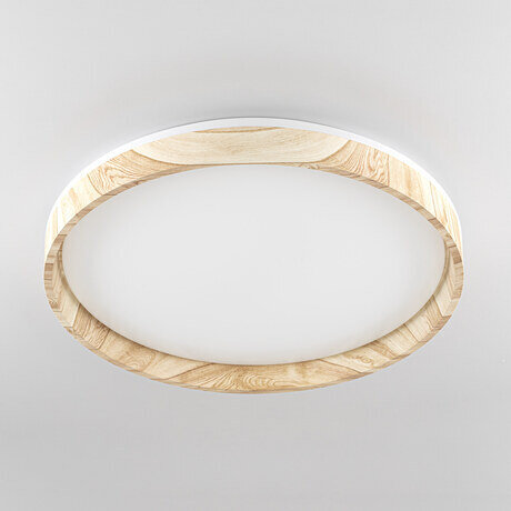 Светодиодный потолочный светильник Citilux ENZO CL753452G с яркой цветной RGB подсветкой выполнен в современно стиле. Основание металлическое. Плафон круглой формы с отделкой под дерево и матовым рассеивателем изготовлен из оптического полимера. Благодаря оригинальной конструкции, светильник равномерно освещает помещение и дополнительно подсвечивает потолок, что придаёт пространству дополнительный объём.