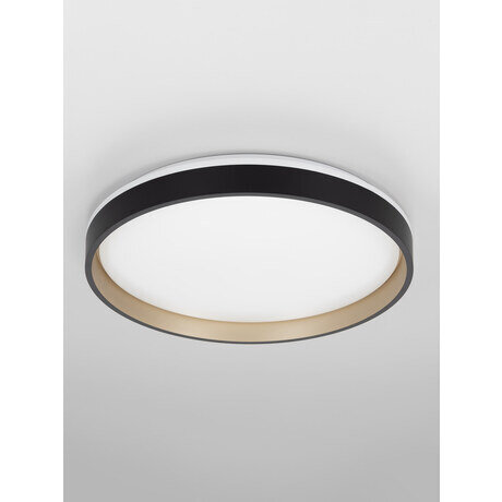 Светодиодный потолочный светильник Citilux ENZO CL753451G с яркой цветной RGB подсветкой выполнен в современно стиле. Основание металлическое. Плафон круглой формы из прочного полимера чёрного цвета с золотой декоративной окантовкой и рассеивателем из оптического полимера. Благодаря оригинальной конструкции, светильник равномерно освещает помещение и дополнительно подсвечивает потолок, что придаёт пространству дополнительный объём.