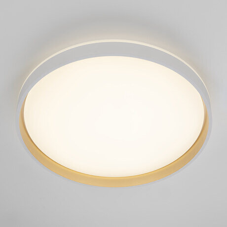 Светодиодный потолочный светильник Citilux ENZO CL753510G с яркой цветной RGB подсветкой выполнен в современно стиле. Основание металлическое. Плафон круглой формы из прочного полимера белого цвета с золотой декоративной окантовкой и рассеивателем из оптического полимера. Благодаря оригинальной конструкции, светильник равномерно освещает помещение и мягко подсвечивает потолок, что придаёт пространству дополнительный объём.
