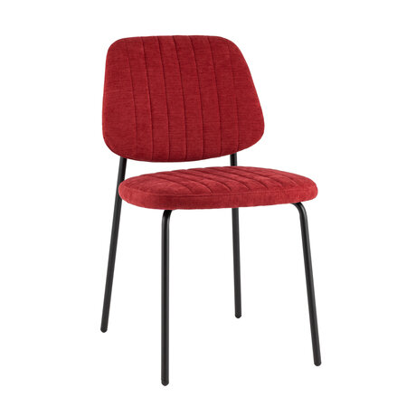 Комфорт и элегантность в каждом элементе Обеденный стул Patrys — это удачное сочетание минималистичного дизайна и практичного комфорта. Модель с мягкой спинкой и сиденьем обеспечит удобную посадку как за семейным обедом, так и в кафе или ресторане. А вертикальная строчка добавляет эстетики и подчеркивает геометрию стула. Износостойкая и приятная обивка Обивка выполнена из шенилла — мягкого и приятного на ощупь материала с бархатистой текстурой. Шенилл отличается высокой износостойкостью, устойчивостью к выцветанию и легкостью в уходе, что делает его отличным выбором для ежедневного использования. Конструкция рассчитана на максимальную нагрузку до 120 кг, что подтверждает её практичность и надежность. Металлические ножки окрашены в чёрный цвет и снабжены подпятниками, защищающими напольное покрытие от царапин и предотвращающими скольжение. Универсальный дизайн для любого интерьера Благодаря бордовой обивке и аккуратному силуэту, стул гармонично впишется в любой совреме