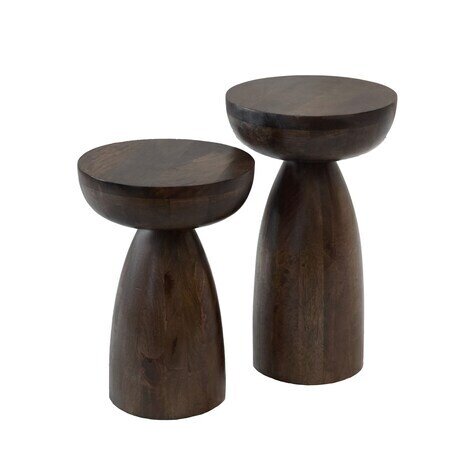 Круглая столешница из массива индийского манго насыщенного шоколадного цвета создаёт тёплый и стильный акцент в гостиной. Коническое основание из твёрдых пород придаёт конструкции скульптурную выразительность и безупречную устойчивость. Столики поставляются в собранном виде — достаточно разместить их в любимом уголке, чтобы мгновенно добавить интерьеру уюта и характера.