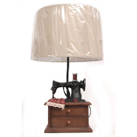 Оригинальная настольная лампа в виде швейной ручной машинки,стоящей на шкатулке. Имеет 2 выдвижных ящичка.