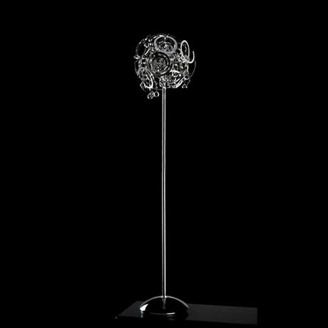 Торшер из коллекции Elica на хромированной арматуре. Плафон состоит из множества металлических спиралей. Декор: прозрачные хрустальные кулоны.
