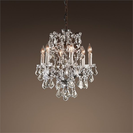 Вторя традициям роскоши викторианских времен, эта люстра сияет сотнями граненных хрустальных кристаллов. Металлические части искусственно состарены, что придает светильнику идеальный винтажный акцент — поверхность сделана матовой и покрыта напоминающим ржавчину лаком.