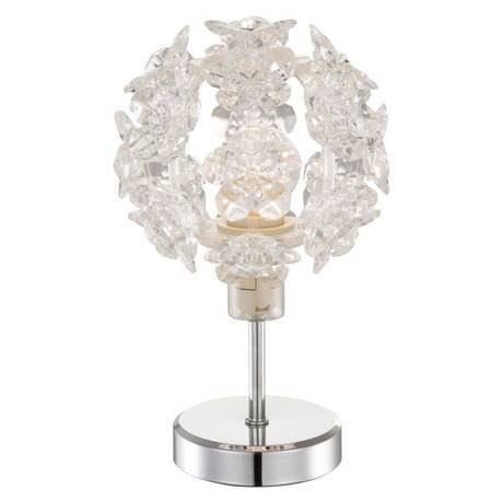 Количество ламп: 1; Мощность лампы, W: 40; Общая мощность, W: 40; Площадь освещения, м2: 2.2; Тип цоколя: E14; Тип лампочки (основной): Накаливания; Напряжение, V: 230; Степень защиты, IP: 20; Виды материалов: Пластиковые; Материал арматуры: Металл; Материал плафонов: Акрил; Цвет: Хром; Цвет арматуры: Хром; Цвет плафонов: Прозрачный; Место установки: На стол.