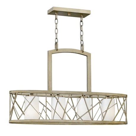 Стильная и оригинальная люстра от производителя Hinkley Lighting. Модель имеет четыре белых стеклянных плафона, оформленных в металлическую решетку. Отделка: серебряная. Модель рассчитана на лампочки: 4 x 100W, E27.