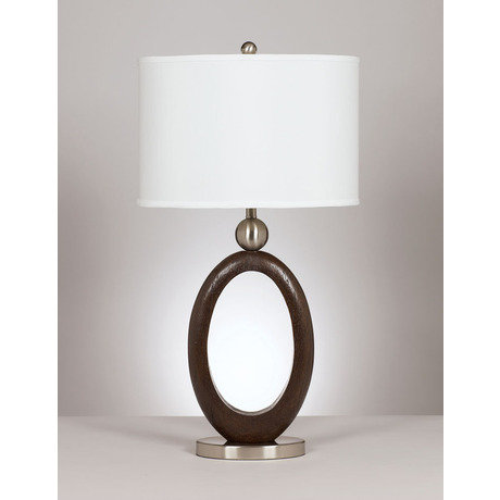 Настольная лампа Elba серого цвета с абажуромТимурОтлично упакована, все целое, работает. Шнур прозрачный.